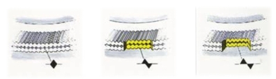 疊片為雜質處理載體,它由一組雙面帶不同方向溝槽的塑料盤片相疊加構成, 其相鄰面上的溝槽棱邊便形成許許多多的交叉點,這些交叉點構成了大量的空腔和不規(guī)則的通路,這些通路由外向里不斷縮小。過濾時,這些通路導致水的紊流,最終促使水中的雜質被攔截在各個交叉點上。如把盤片疊加安裝在過濾芯骨架上,在彈簧的壓力作用下就形成了緊壓的過濾單元。每個過濾單元中被彈簧壓緊的疊片便形成了無數(shù)道雜質顆粒無法通過的濾網(wǎng),疊片寬度為130 mm,疊片材質為優(yōu)質工程塑料,耐磨性極高。輔以不銹鋼彈簧支撐,結構堅固。反沖水流沿疊片內壁切線方向自內向外沖洗疊片表面粘附的各種雜質,疊片在反沖洗水流的作用下作旋轉,保證所有污物均被有效洗凈并排出??墒褂脮r間間隔和壓力差控制反沖洗。一旦設定完畢,即可長期使用。自動反沖洗過濾器在不中斷工作的情況下在設定的時間內完成整個自動反沖洗過程。采用這種過濾原理的過濾器在過濾和反沖洗時疊片間隙動態(tài)可變,對提高過濾性能、過濾水質非常有利, 又可大大減少反洗用水量。盤片上溝槽的不同深淺和數(shù)量確定了過濾單元的過濾精度。 原理解釋如下圖